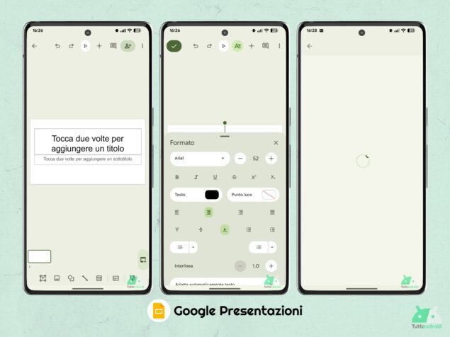 Nello specifico, la “parte” delle tre app che riceve il nuovo design è l’editor: aprendo un documento, un foglio o una presentazione, verramo accolti dal nuovo indicatore di caricamento, ovvero un elemento circolare che si riempie con una forma ondulata.