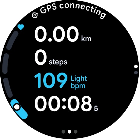 La schermata di monitoraggio dell’attività fisica presenta il pulsante d’avvio circondato dal classico elemento di caricamento del Material 3 Expressive, ovvero un cerchio che assume una forma ondulata man mano che scorre il tempo prima che venga avviato il monitoraggio.