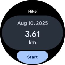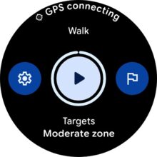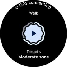 La schermata di monitoraggio dell’attività fisica presenta il pulsante d’avvio circondato dal classico elemento di caricamento del Material 3 Expressive, ovvero un cerchio che assume una forma ondulata man mano che scorre il tempo prima che venga avviato il monitoraggio.