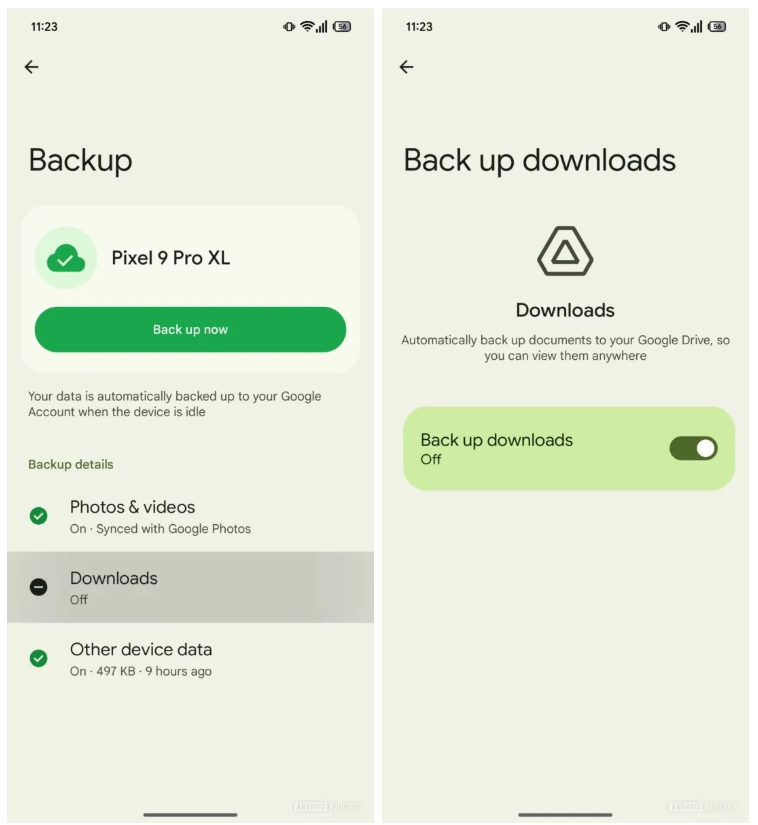 Così come il sistema utilizza Google Foto per il backup di foto e video, sembra che il colosso di Mountain View si affiderà a Google Drive per gestire l’archiviazione dei download (in pratica, si tratta di una novità studiata per dare più visibilità ad un’opzione che già gli utenti possono sfruttare archiviando sul cloud la cartella dei download).