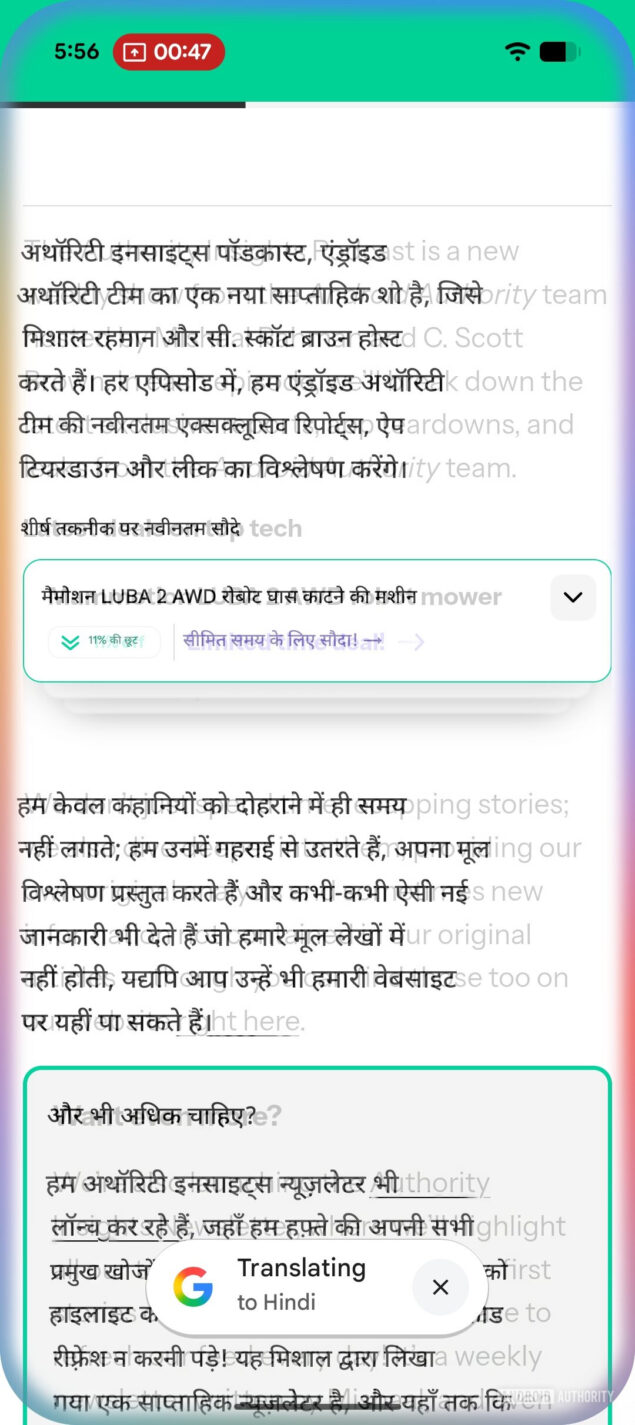 Sembra che Google abbia iniziato a distribuire ad alcuni beta tester di App Google, casa della funzione Cerchia e Cerca, una nuova potenzialità chiamata Scroll and translate che punta ad evolvere la potenzialità di traduzione già offerta dalla funzione.
