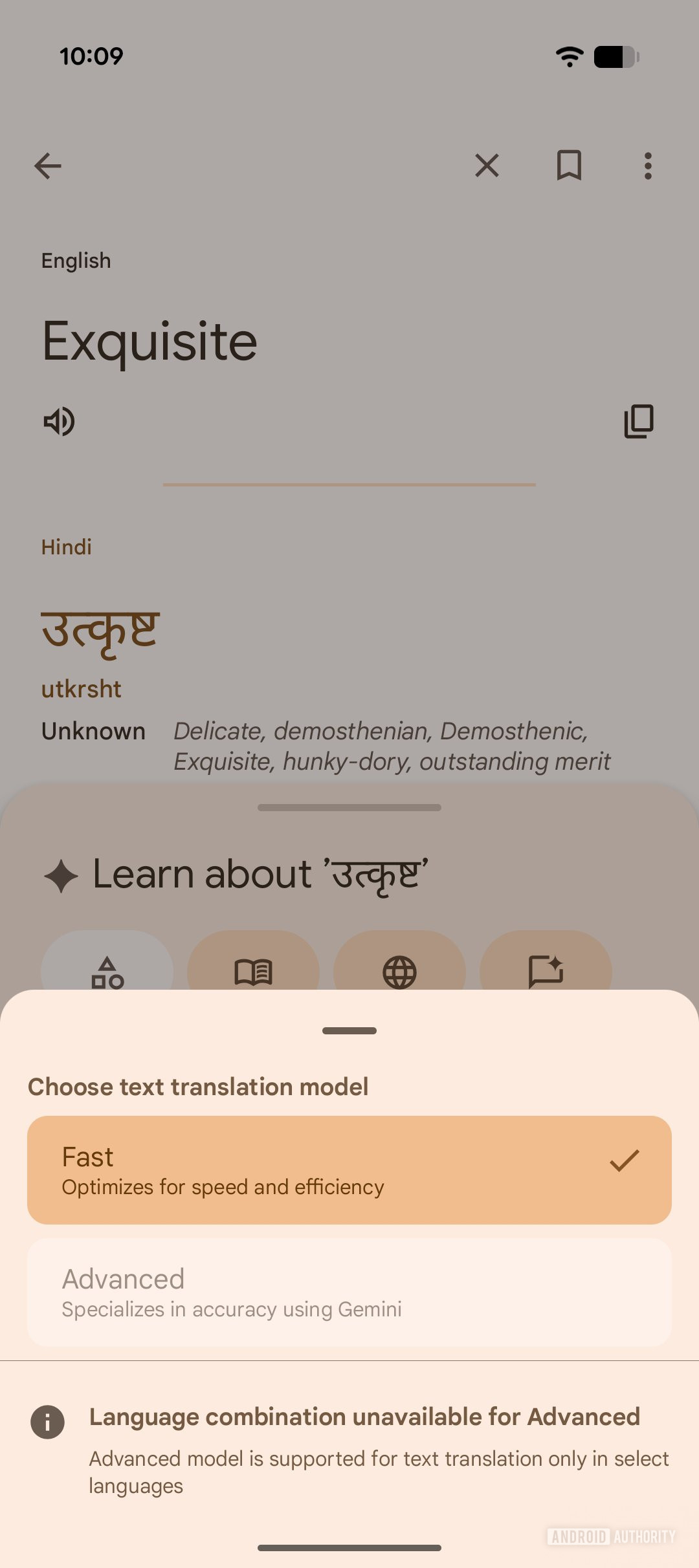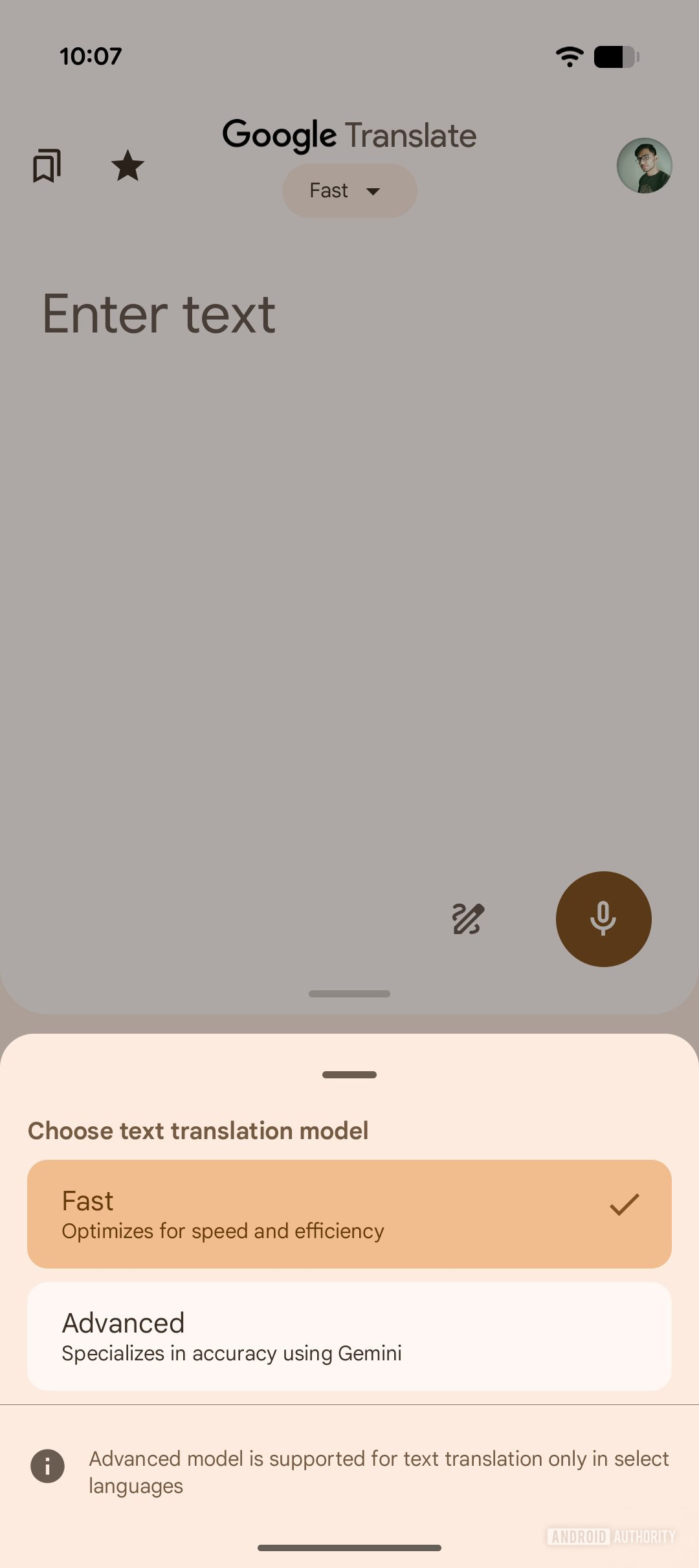 Questo selettore consente di scegliere il modello di traduzione testuale tra due opzioni disponibili: Fast (ottimizzato per velocità ed efficienza) e Advanced (specializzato nella precisione sfruttando Gemini).