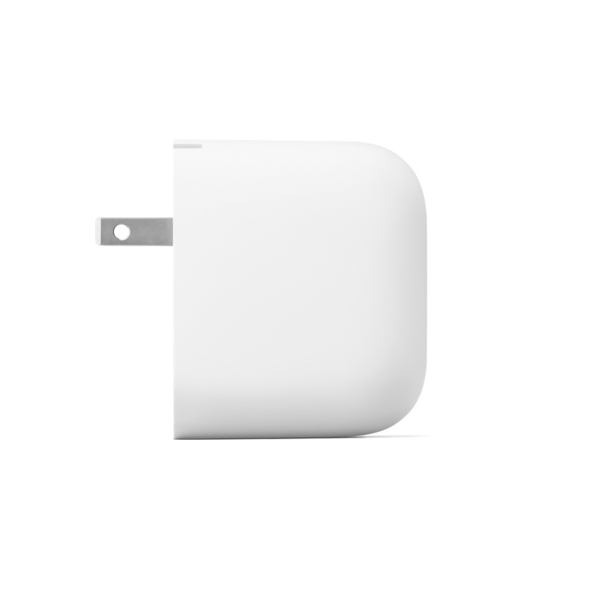 Partiamo dal primo accessorio che, in realtà, è un dispositivo “abilitante” per la tecnologia PixelSnap. Esso si chiama Pixel Flex Dual Port 67W Fast Charger e, senza fare mistero, svela già il suo compito: si tratta di un sobrio caricabatterie da parete che offre due porte USB-C e può supportare al massimo una potenza di 67 W.