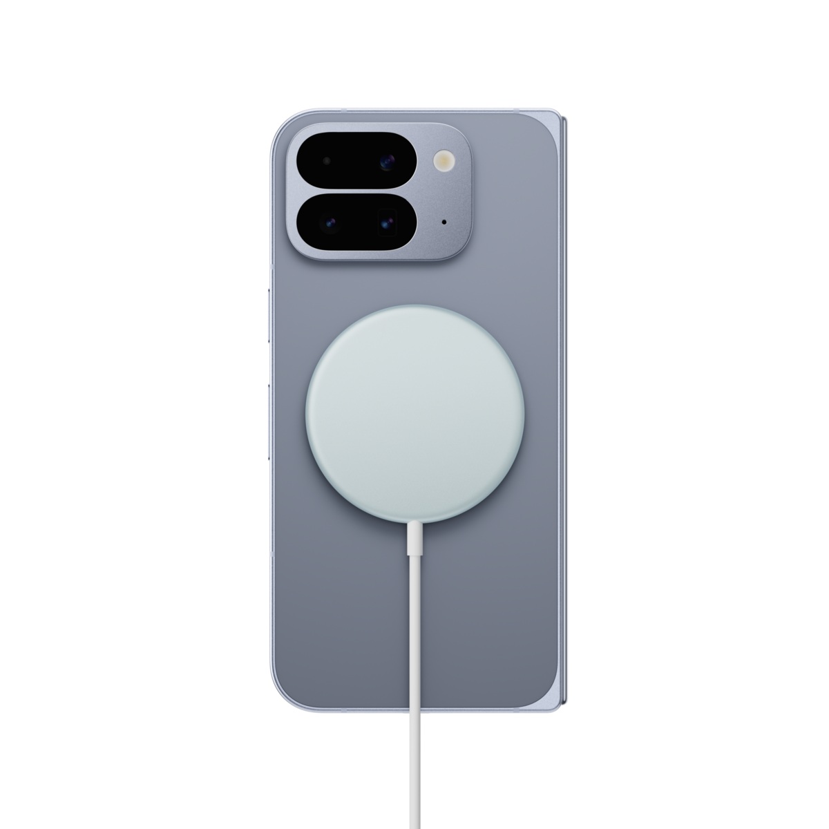 Il terzo accessorio è PixelSnap Charger, un caricabatterie wireless magnetico che è compatibile con tutti i modelli, attraverso lo standard Qi2, fino a 15 W; su Pixel 10 Pro XL ha una marcia in più, sfruttando lo standard Qi2.2, fino a 25 W.