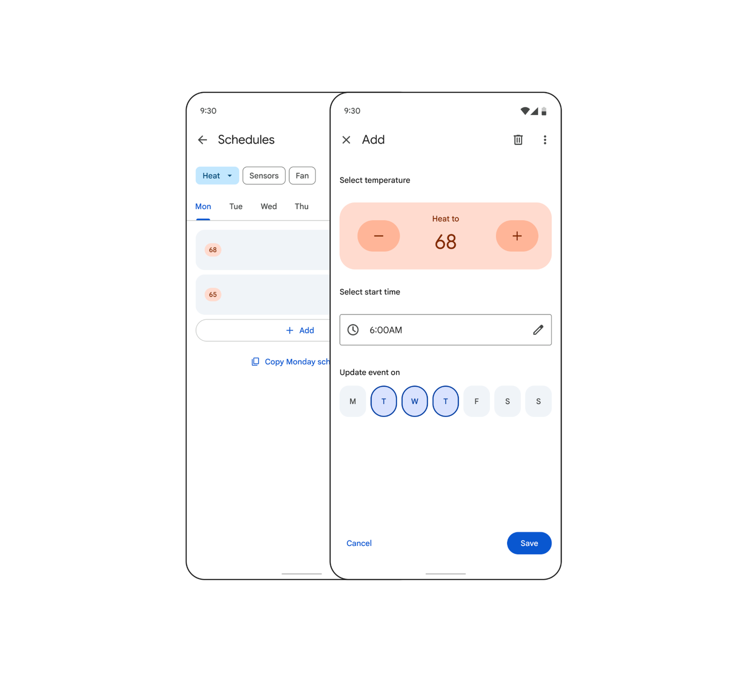 Anche se la programmazione automatica può aiutare a risparmiare energia, in tanti preferiscono impostare manualmente le programmazioni: ora tutte quelle esistenti nell’app Nest vengono trasferite all’app Google Home, così da permettere di aggiungere, modificare o rimuovere gli eventi per riscaldamento e raffreddamento. Si possono anche impostare le programmazioni di sensori e ventole per mantenere il termostato in funzione con la configurazione ritenuta perfetta per la propria casa.