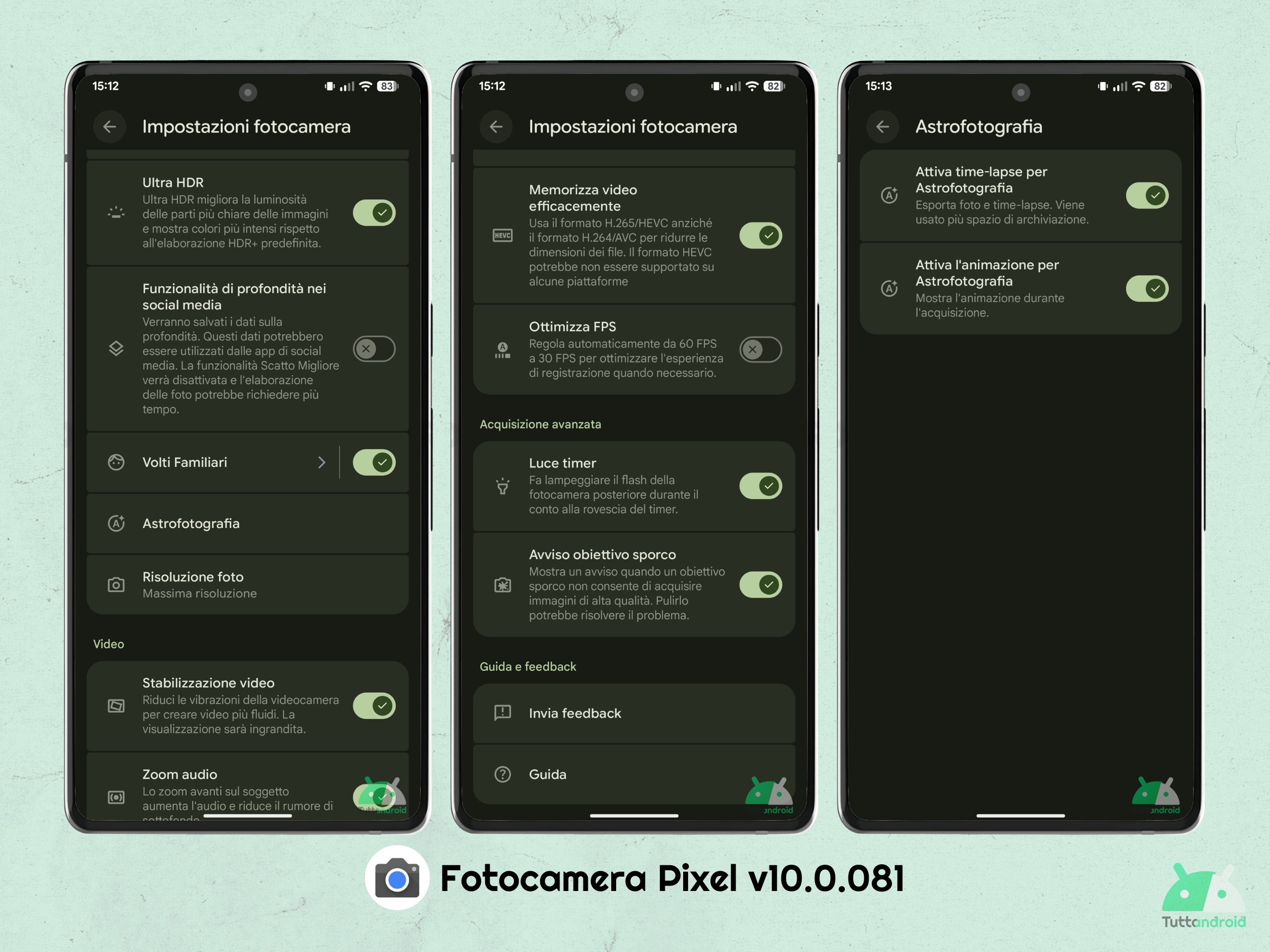 La nuova versione 10.0.081.790960413.20 dell’app Fotocamera Pixel è in fase di rilascio graduale attraverso il Google Play Store su tutti i Pixel supportati che eseguono Android 16 (ovvero da Google Pixel 6 in poi): per verificare la disponibilità sul vostro dispositivo, vi basterà effettuare un tap sul badge sottostante e, eventualmente, selezionare “Aggiorna”.