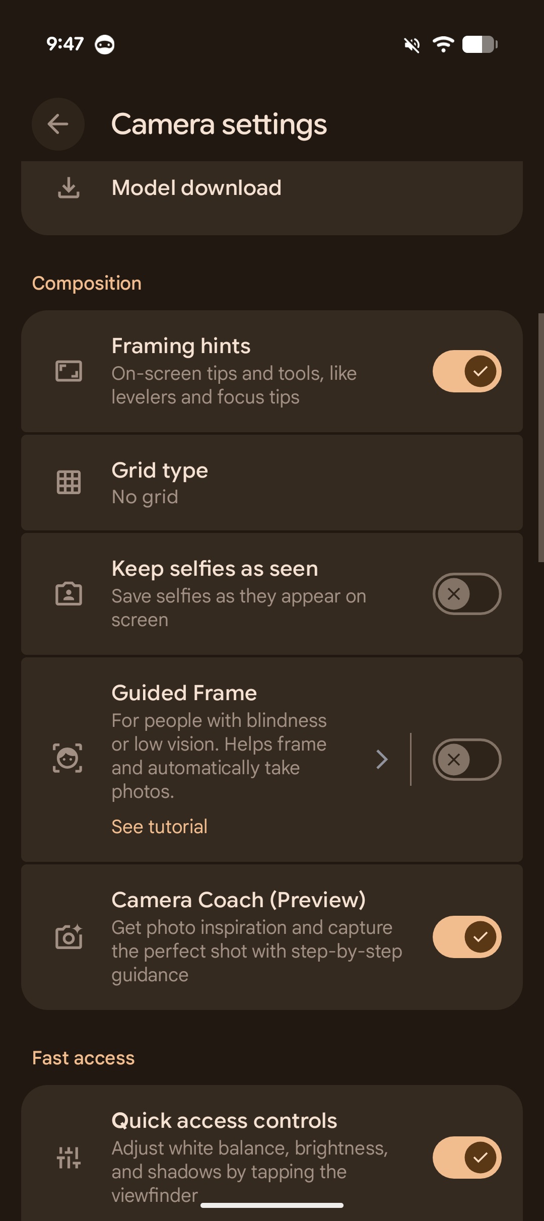 Possiamo poi riscontrare la presenza di un’altra funzione esclusiva dei Pixel 10, chiamata Camera Coach, che sfrutta Gemini per guidare gli utenti nello scatto perfetto, fornendo suggerimenti su illuminazione, composizione della scena e molto altro. La funzione è indicata come “anteprima”.