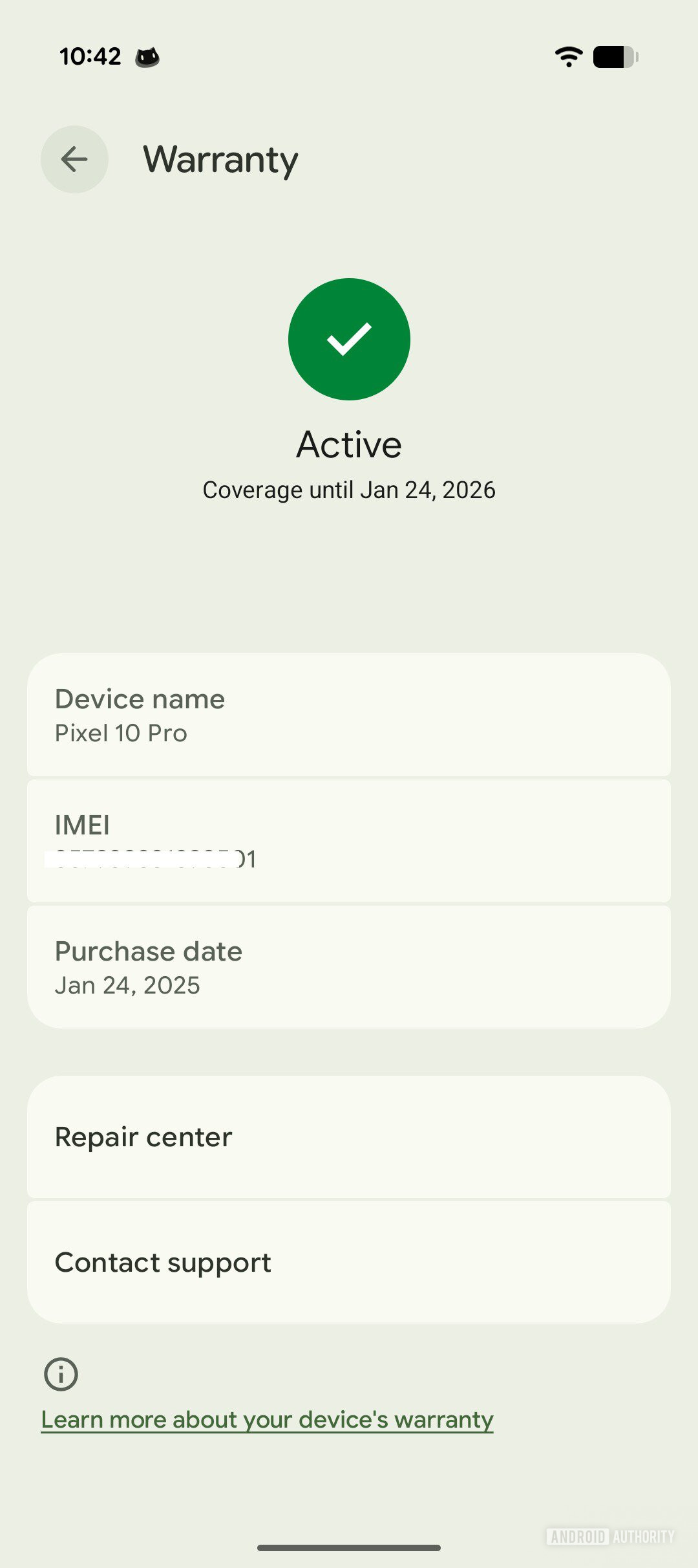 - Il terzo blocco offre collegamenti per le informazioni sulla garanzia (mostra le informazioni sulla garanzia ed è protagonista nella terza immagine della seguente galleria), per consigli e supporto, per contattare il supporto e per avviare una riparazione.