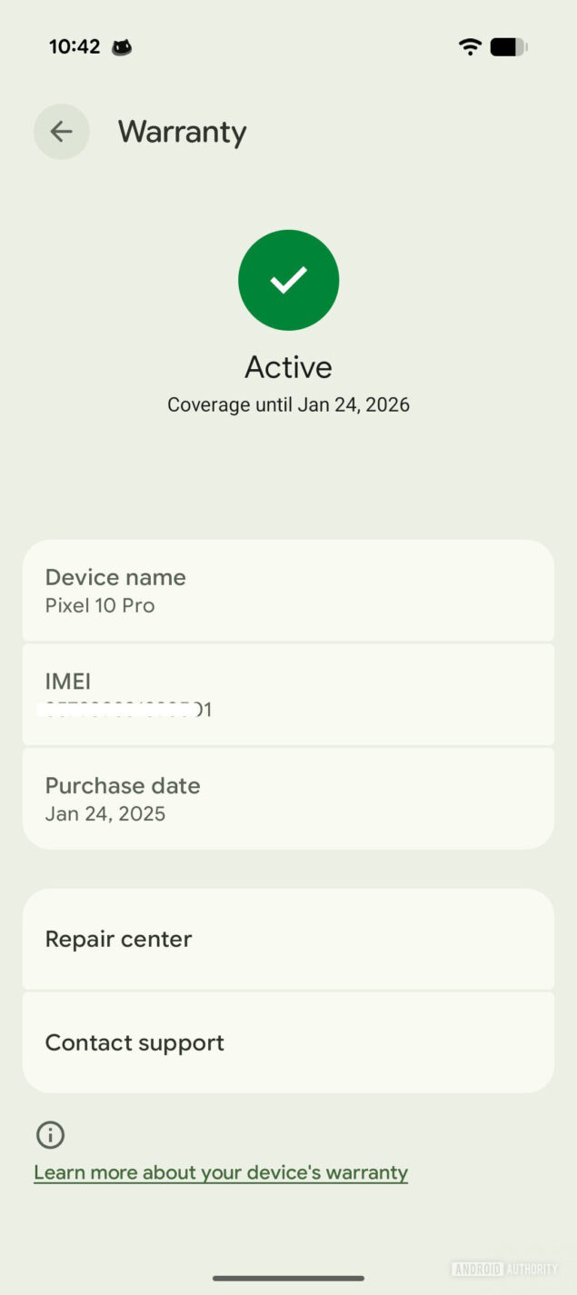 - Il terzo blocco offre collegamenti per le informazioni sulla garanzia (mostra le informazioni sulla garanzia ed è protagonista nella terza immagine della seguente galleria), per consigli e supporto, per contattare il supporto e per avviare una riparazione.