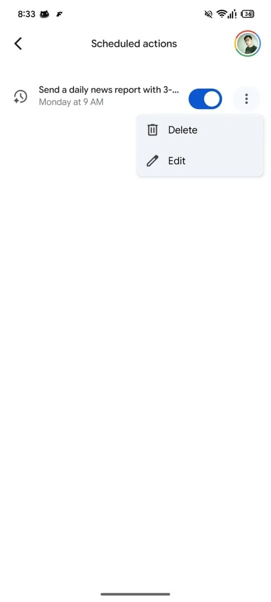 Ora è possibile modificare le Azioni pianificate direttamente dall’app Gemini