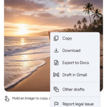 Il visualizzatore delle immagini generate dall’IA non presenterà più i collegamenti per condividere o scaricare l’immagine in alto a destra. Essi verranno collocati in basso per rendere l’interfaccia utente simile a quella che offre il visualizzatore delle immagini di Google Foto; la barra degli strumenti in basso, oltre a condividi e scarica, includerà i pulsanti “Copia” e “Vai alla chat”.