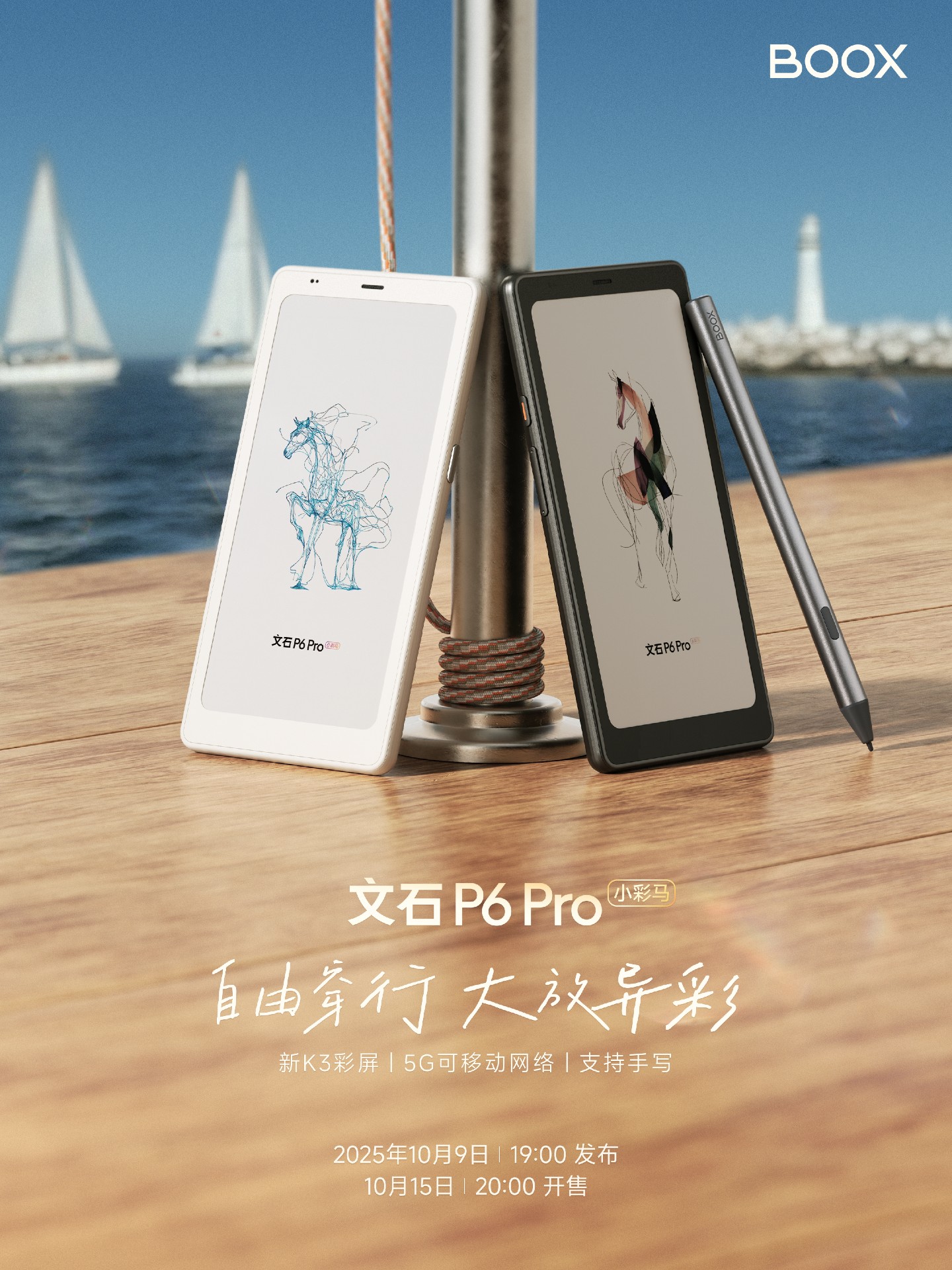 Stiamo parlando del Boox P6 Pro, atteso per domani, 9 ottobre in Cina, e che arriverà in due versioni: una con display E-Ink in bianco e nero e una con pannello a colori dotato di supporto per stilo.