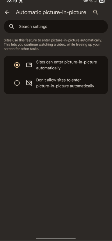Stando a quanto è stato rivelato da Leopeva64-2 su Reddit, Google Chrome per Android supporterà la funzione Picture-in-Picture automatica, ossia una soluzione che consente alle schede che riproducono contenuti multimediali di ridursi automaticamente a una piccola finestra mobile quando si cambia scheda o si apre il selettore di schede.