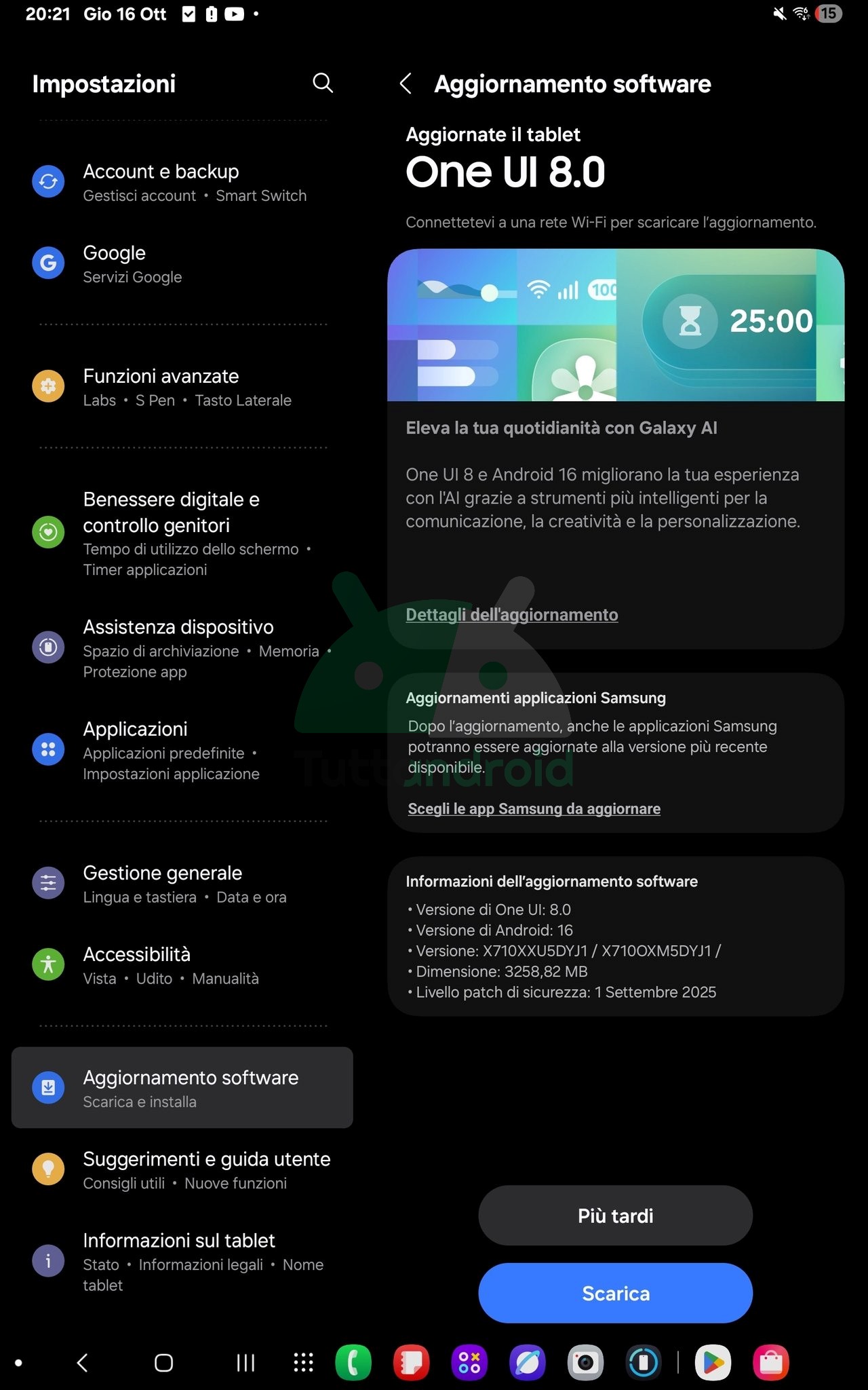 aggiornamento Samsung Galaxy Tab S9 a One UI 8 e Android 16