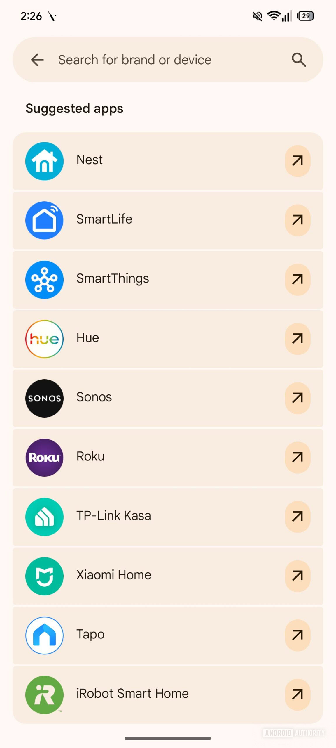 Effettuando un tap su questo pulsante, saremo rimandati a una schermata che contiene l’elenco di app o servizi collegati/supportati e vari dispositivi; in alto è presente una barra di ricerca per cercare un marchio o un dispositivo specifico. Quindi, in soldoni, gli utenti avranno la possibilità di cercare direttamente il prodotto da un elenco.