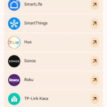 Effettuando un tap su questo pulsante, saremo rimandati a una schermata che contiene l’elenco di app o servizi collegati/supportati e vari dispositivi; in alto è presente una barra di ricerca per cercare un marchio o un dispositivo specifico. Quindi, in soldoni, gli utenti avranno la possibilità di cercare direttamente il prodotto da un elenco.