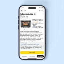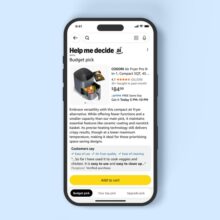 Quando si visualizzano diversi articoli all’interno della stessa categoria senza concludere un acquisto, in alto a destra nella pagina del prodotto compare il pulsante Help Me Decide. Premendolo si attiverà una selezione automatica creata dall’intelligenza artificiale che analizza la cronologia di navigazione, le ricerche recenti, i prodotti visualizzati e anche gli acquisti precedenti, per suggerire l’opzione che meglio si adatta ai gusti e alle necessità di quell’utente.