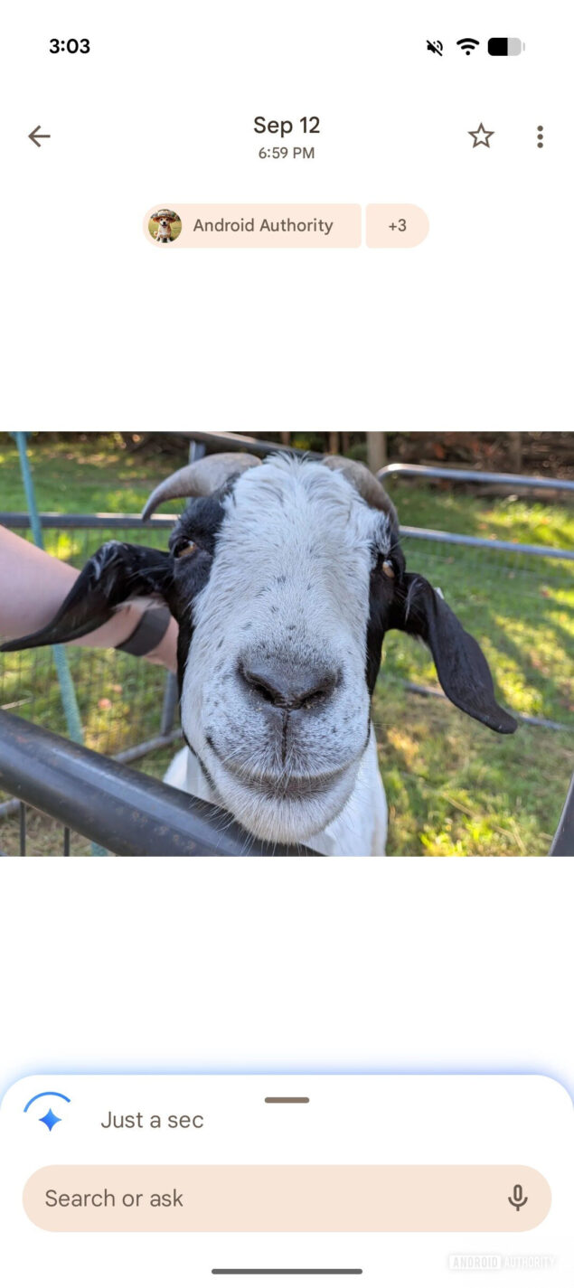 Come potrete notare dalla seguente immagine, il nuovo pulsante Ask verrà mostrato direttamente nella barra degli strumenti del visualizzatore delle immagini. Effettuando un tap su di esso, compariranno una barra di ricerca per inserire il testo della domanda o l’icona del microfono per l’input vocale.