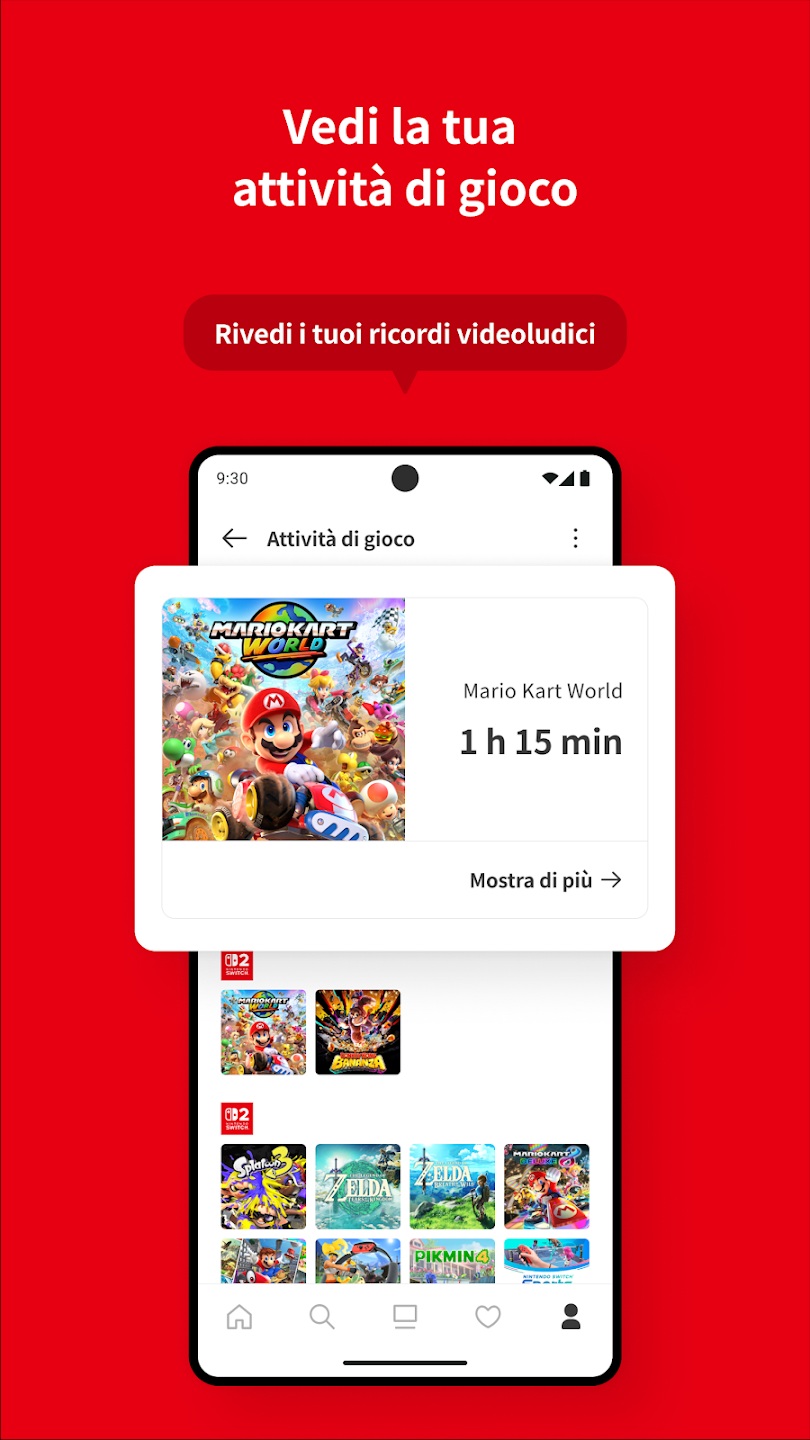 Puoi vedere la tua attività di gioco su Nintendo Switch 2/Nintendo Switch. Se hai una console Nintendo 3DS o Wii U, puoi anche vedere la tua attività di gioco su queste console fino alla fine di febbraio 2020!