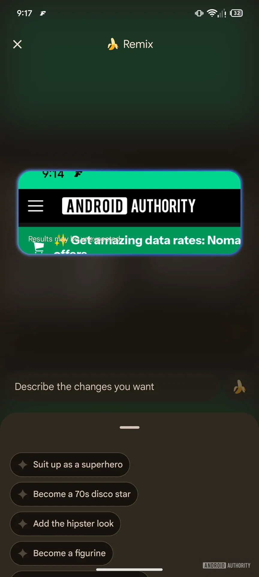 Una volta selezionata l’opzione Remix per la prima volta, comparirà un avviso che informa l’utente che le immagini verranno inviate ai server di Google per l’elaborazione. Solo dopo aver accettato, si potrà procedere con la creazione vera e propria. Un’interfaccia chiara guiderà l’utente tra suggerimenti pronti all’uso e uno spazio dedicato alla scrittura del proprio prompt. Basterà un tocco sul pulsante contrassegnato dal simbolo della banana per generare l’immagine modificata. Qualora si volesse intervenire ancora, si potrà attivare un nuovo Remix fino a che non si ottiene il risultato desiderato.