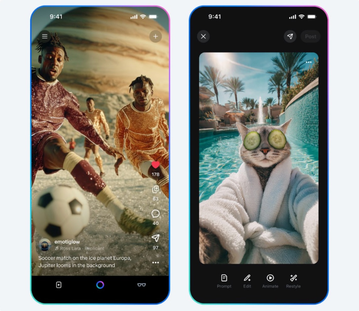 All’interno dell’app, Vibes si presenta come un feed separato in cui è possibile scorrere per visualizzare video generati dagli altri utenti. La creazione di un video parte da un prompt testuale o da un’immagine, con la possibilità di aggiungere musica, effetti o variazioni di stile. Una volta pubblicate, le varie clip possono essere remixate, modificate o usate come base da altri utenti presenti sulla piattaforma, in maniera simile a quanto avviene già su TikTok. L’unica differenza, però, è che tutto è creato con l’IA.