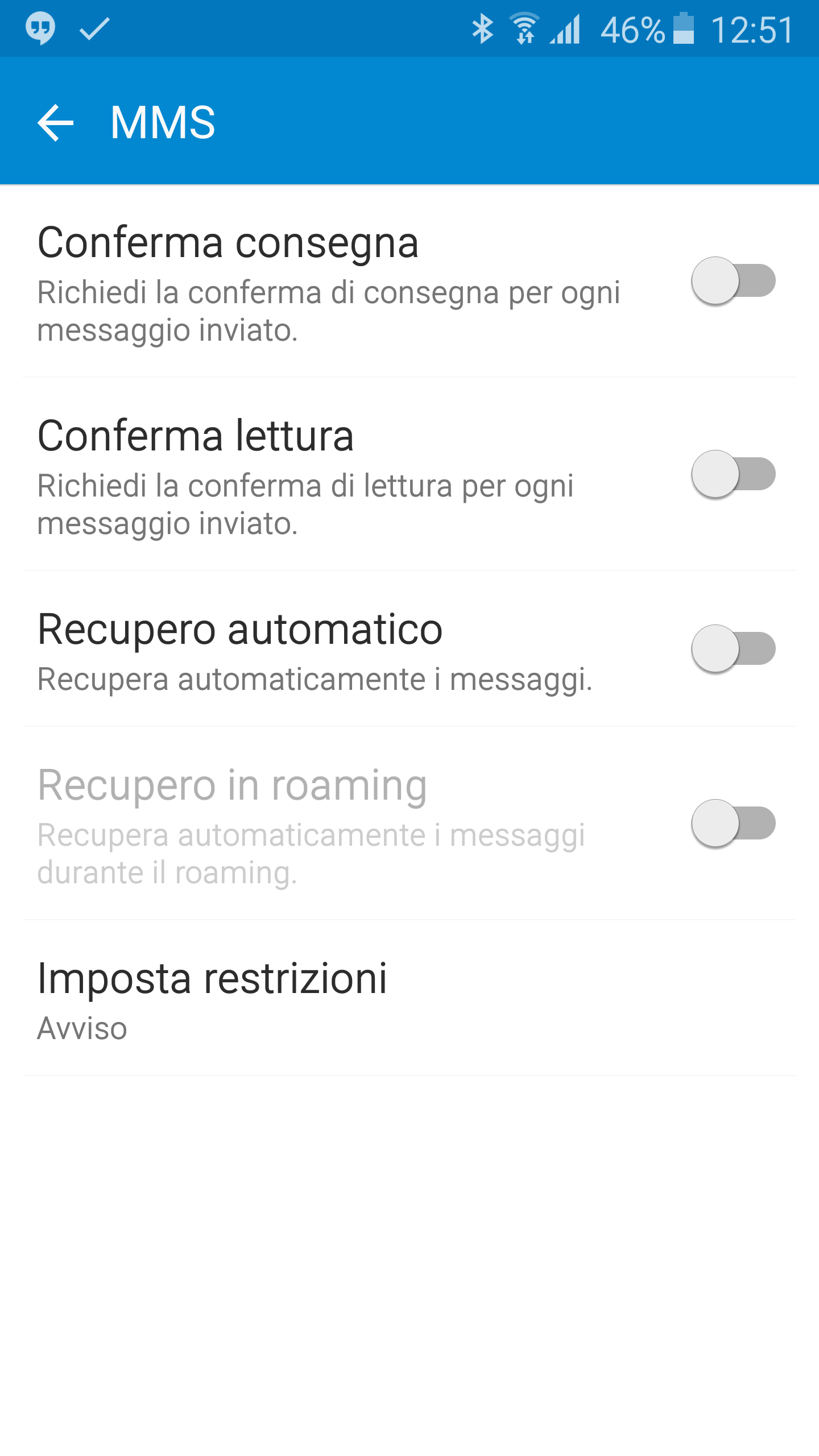 - Disattivare la voce “Recupero automatico” nel gruppo di opzioni “MMS”