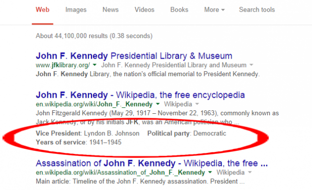 Alcuni utenti stanno iniziando a visualizzare delle informazioni aggiuntive sotto alcuni risultati di ricerca, che rendono il tutto ancora più ricco e completo. Per il momento, queste informazioni sembra vengano visualizzate solamente con i risultati relativi a Wikipedia.