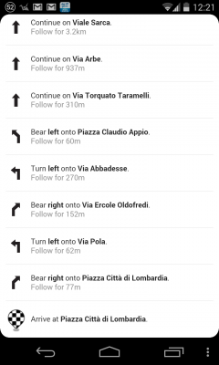 Entrambe le versioni supportano la navigazione turn-by-turn, ma la versione Amazon ha una interfaccia più antiquata, oltre ad essere in inglese. Un aspetto assolutamente positivo di entrambe le mappe è che integrano anche i servizi pubblici, contrariamente a Google Maps – a Milano da qualche tempo non sono più compresi i mezzi ATM nelle indicazioni di percorso di Google, ma soltanto i treni; in altre città la situazione potrebbe essere differente.