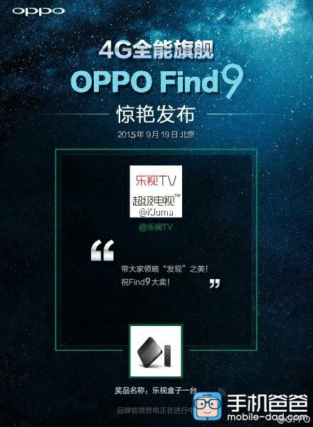 Non conosciamo nessuna specifica tecnica del device. Al momento le uniche informazioni in nostro possesso sono quelle contenute nell’immagine teaser allegata di seguito, all’interno della quale si legge il nome Oppo Find 9, la data di presentazione e la scritta 4G.