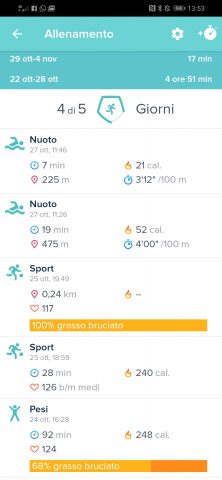 - a raggiungere 6-7 giorni di utilizzo con la registrazione degli allenamenti in modalità manuale (selezionando quindi l’attività sportiva prima di iniziarla);
