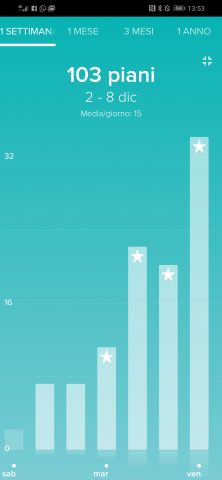 - a raggiungere 10-11 giorni di utilizzo con la registrazione degli allenamenti in modalità automatica, ovvero non impostando l’attività e lasciando all’applicazione Fitbit di capire l’intensità degli sforzi fisici e quindi l’allenamento effettuato.