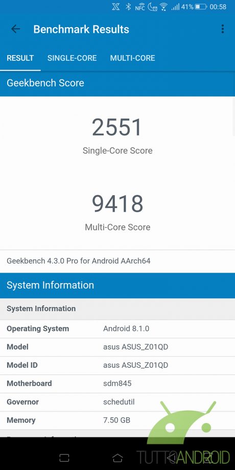 ASUS ROG Phone a livello tecnico è lo smartphone Android più potente attuamente sul mercato, grazie alla sua Mobile Platform Qualcomm Snapdragon 845, octa-core normalmente dalla frequenza massima di 2,8 GHz ma qui overclockabile fino a 2,96 GHz, accompagnato ovviamente dalla GPU Adreno 630.