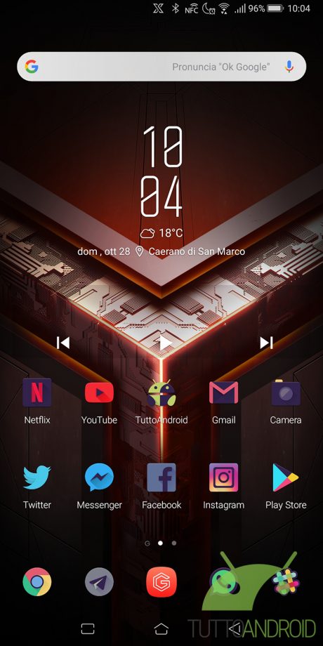 Ho testato ASUS ROG Phone con la ROG Gaming X mode UI, basata su Android 8.1 Oreo. In sostanza si tratta di una rivisitazione della ZenUI vista per esempio su Zenfone 5Z, ma rivisitata graficamente per renderla in tinta con l’estetica del dispositivo e con anche l’aggiunta di qualche funzioncina interessante legata all’ambito gaming.