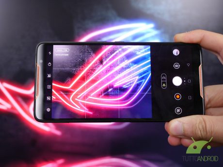 ASUS ROG Phone presenta sul retro un sistema a doppia fotocamera, accompagnato da un flash LED: la principale è una Sony IMX363 da 12 MegaPixel f/1.8 con pixel larghi 1.4µm e OIS a 4 assi, mentre la secondaria è da 8 MegaPixel grandangolare con angolo di visuale di 120°. Sul fronte invece c’è un sensore da 8 MegaPixel f/2.0 con angolo di visuale di 84°.