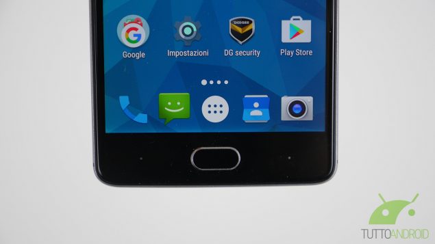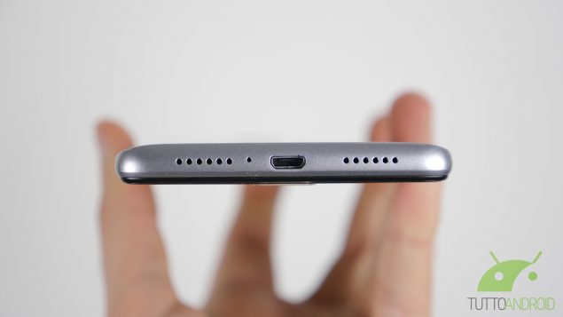 Per via del corpo molto liscio l’ergonomia non è delle migliori. La disposizione dei tasti vede il pulsante di accensione e il carrellino per le SIM a destra, il jack da 3,5 mm in alto, il bilanciere del volume a sinistra e un singolo speaker, il microfono principale e il connettore microUSB sul fondo. Il tasto fisico centrale è inoltre dotato di lettore di impronte digitali, abbastanza veloce e preciso.