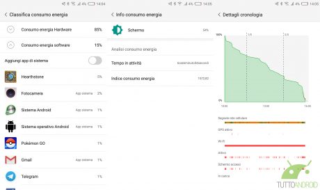 Dall’unione di 3600 mAh e dello Snapdragon 625, la batteria non poteva che essere uno dei punti cardine della recensione di Nubia M2. Con un utilizzo intenso sono riuscito ad arrivare a notte fonda con 6 ore e mezza di display attivo e il 30% di carica residua, mentre con un uso blando prevalentemente sotto WiFi sono arrivato a due giornate e mezzo d’uso con 5 ore di display.