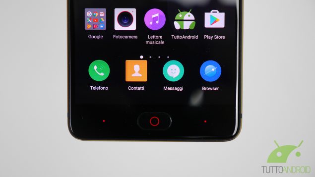 Sul fronte è presente un lettore di impronte integrato nel tasto home capacitivo. Il sensore funziona bene, ma a livello estetico il cerchio rosso disegnato all’interno è l’unica grande pecca in un design altrimenti di alto livello.
