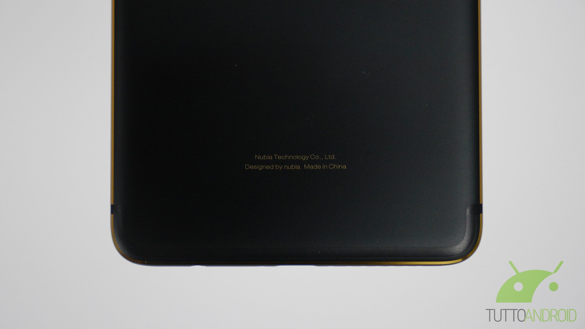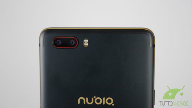 Il punto cruciale della recensione di Nubia M2 è il design, in cui l’azienda ha posto una cura maniacale. Il corpo è totalmente in metallo nero opaco, con delle linee morbide e un po’ stondate che unite alle finiture dorate lungo tutti i bordi gli donano un aspetto ricercato ed elegante. La sensazione sia a livello visivo che a livello di materiali è decisamente premium, e non manca ovviamente l’inserto rosso attorno al modulo delle fotocamere a dare l’ultimo tocco di classe.