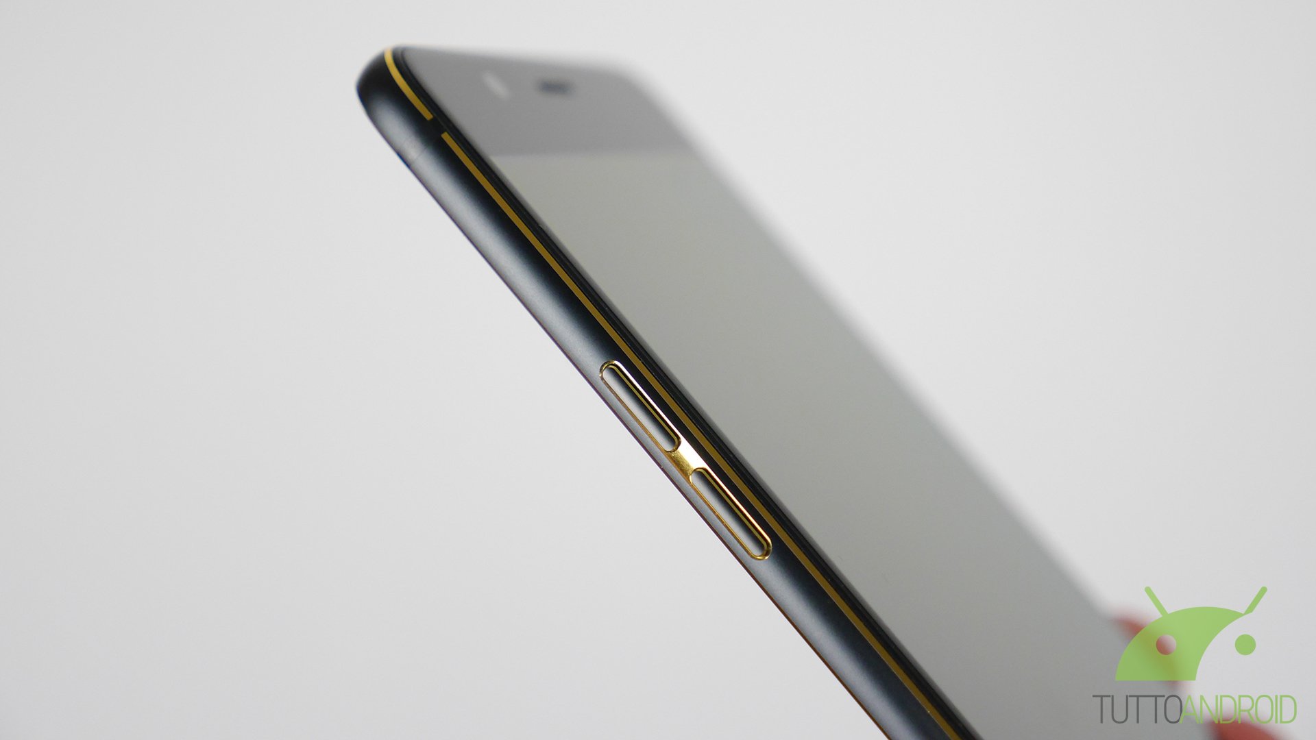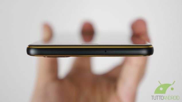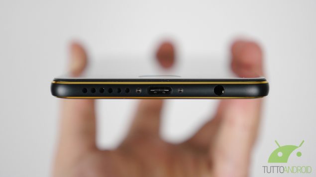 La disposizione degli elementi vede il pulsante di accensione e il carrellino delle SIM a destra, il bilanciere del volume a sinistra e in basso trovano posto invece il jack da 3,5 mm, lo speaker, il microfono principale e il connettore USB Type-C.