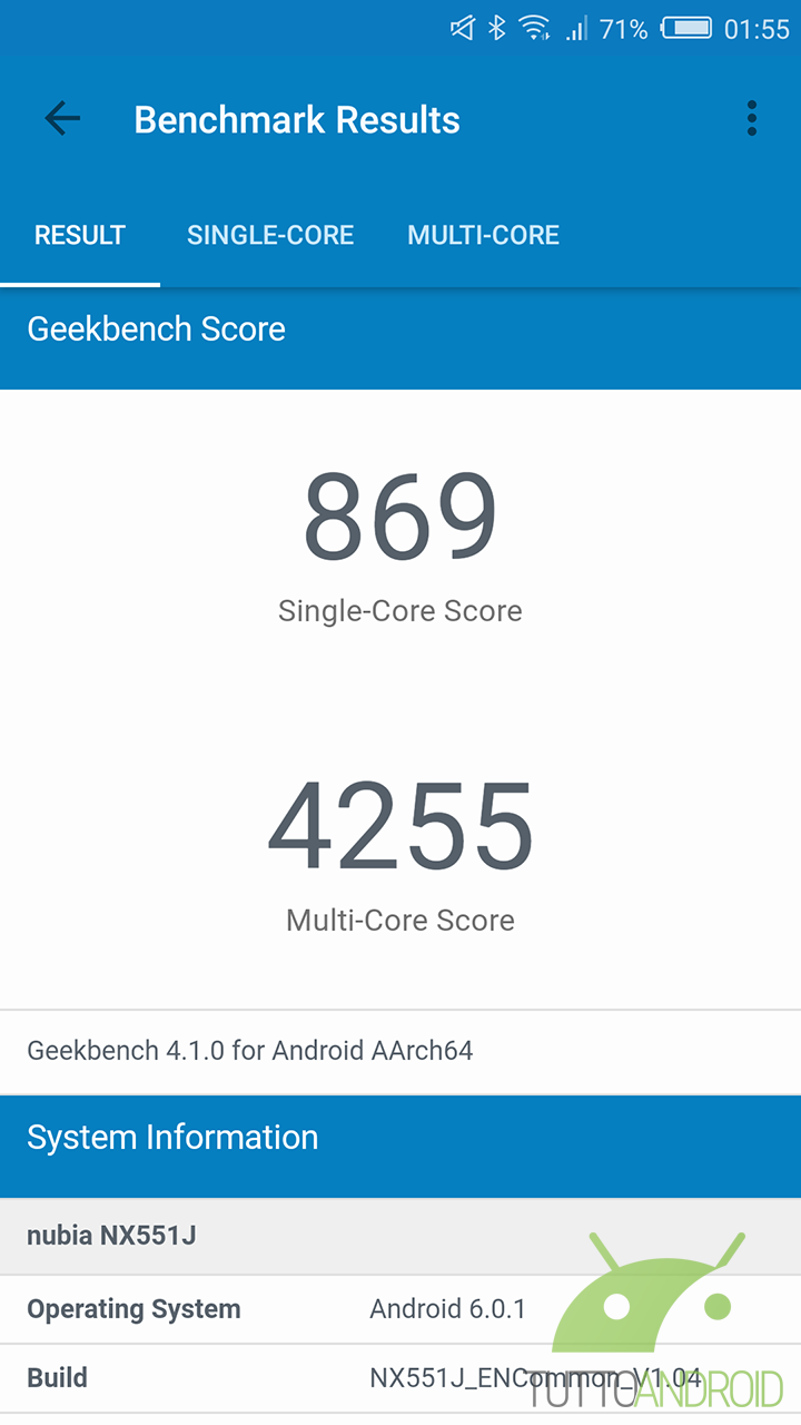 Dall’unione di 3600 mAh e dello Snapdragon 625, la batteria non poteva che essere uno dei punti cardine della recensione di Nubia M2. Con un utilizzo intenso sono riuscito ad arrivare a notte fonda con 6 ore e mezza di display attivo e il 30% di carica residua, mentre con un uso blando prevalentemente sotto WiFi sono arrivato a due giornate e mezzo d’uso con 5 ore di display.
