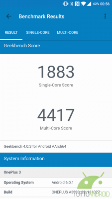 Se già OP3 era uno degli smartphone più fluidi sul mercato, OnePlus 3T con un hardware leggermente migliorato non può che essere un’evoluzione in positivo del predecessore. Le performance sono di altissimo livello e qualsiasi cosa si faccia il sistema è sempre fluidissimo e reattivo. Inoltre grazie al nuovo file system l’apertura delle app pesanti è stata velocizzata, anche se per le app leggere non si nota alcuna differenza.