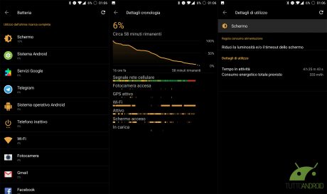 La batteria è sicuramente un aspetto importante di questa recensione di OnePlus 5. La capienza sotto la scocca è di 3300 mAh, che si traducono in una giornata intera di utilizzo intenso con circa 4 ore di display attivo o poco più. Un risultato quasi nella media rispetto ai top di gamma di questo 2017.