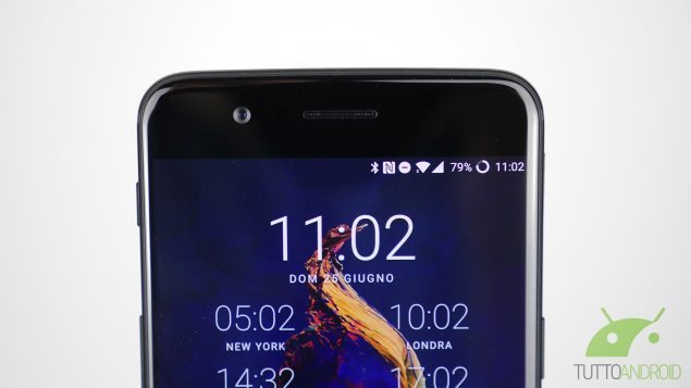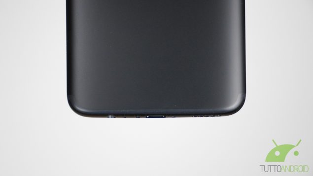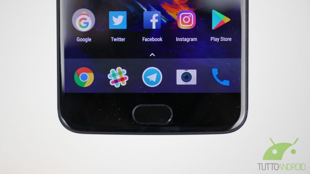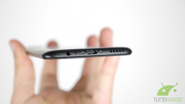 La parte superiore è completamente pulita, lasciando sul fondo sia il connettore USB Type-C 2.0 che il jack da 3,5 mm. Sul fronte invece c’è la protezione di un vetro Gorilla Glass 5 con finitura 2.5D e sulla parte inferiore c’è un’area in ceramica non premibile che funziona da pulsante capacitivo e da lettore di impronte digitali, lo stesso di OnePlus 3(T) e ancora privo di rivali in quanto a velocità di sblocco.