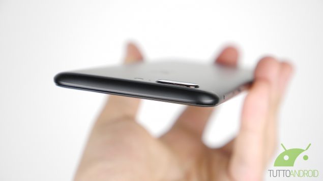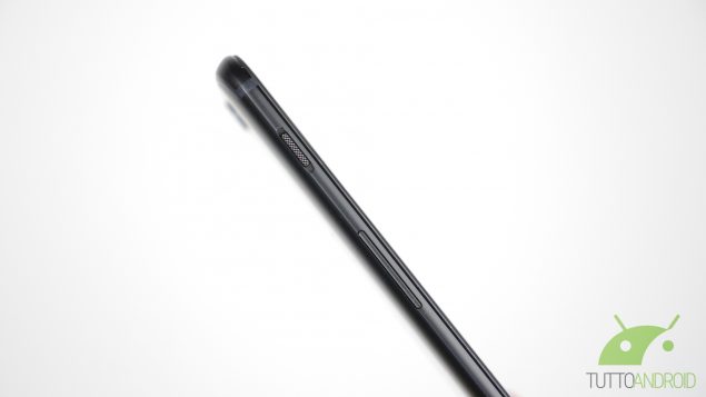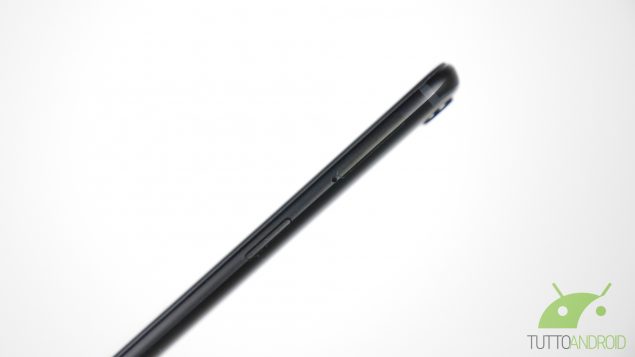 La disposizione dei tasti vede a destra il pulsante di accensione e il carrellino per le due nano SIM, mentre a sinistra c’è il bilancere del volume e lo slider a 3 posizioni per impostare la modalità di notifica dello smartphone (tutte le notifiche, solo quelle prioritarie, non disturbare), comodissimo nell’uso di tutti i giorni ma posizionato leggermente troppo in alto.
