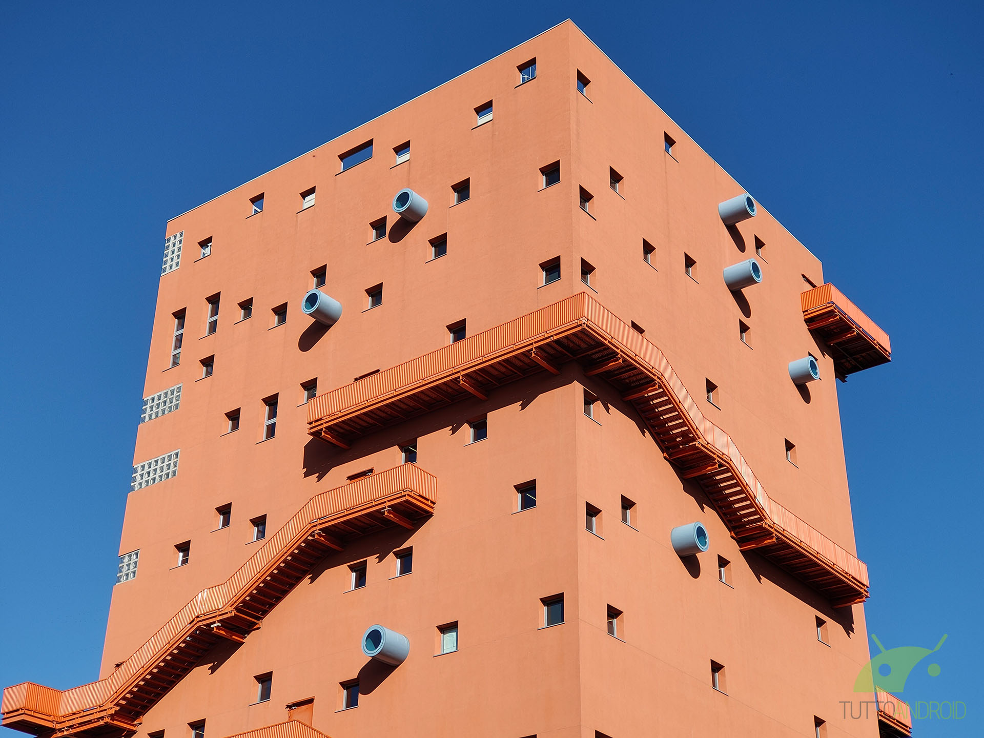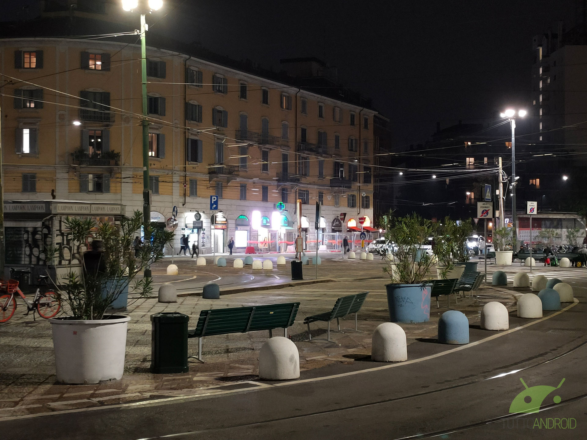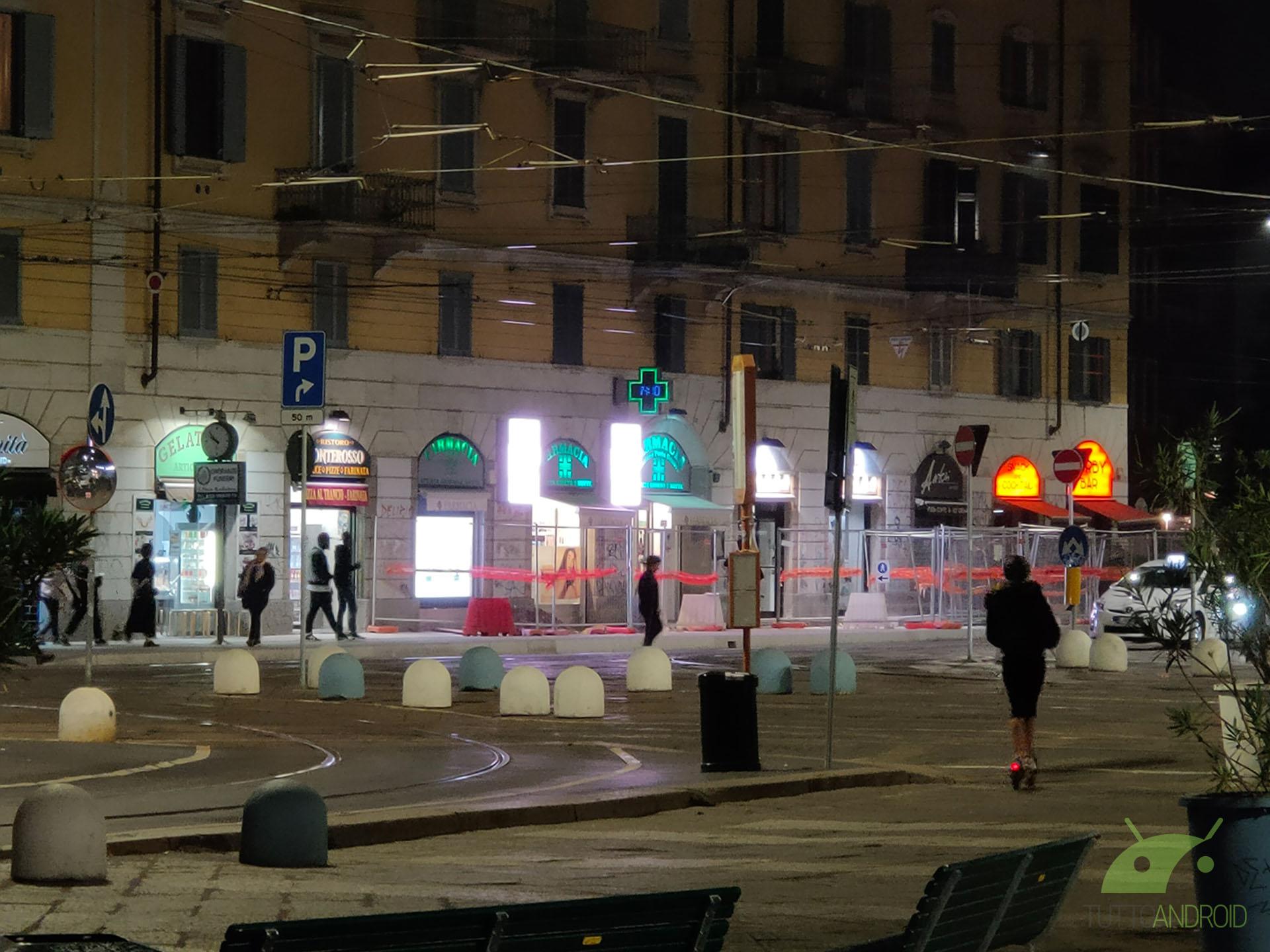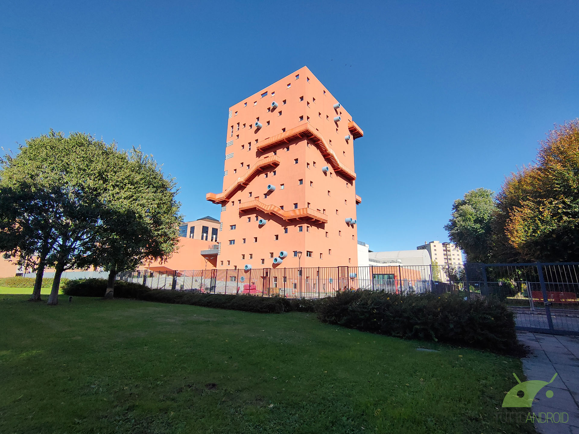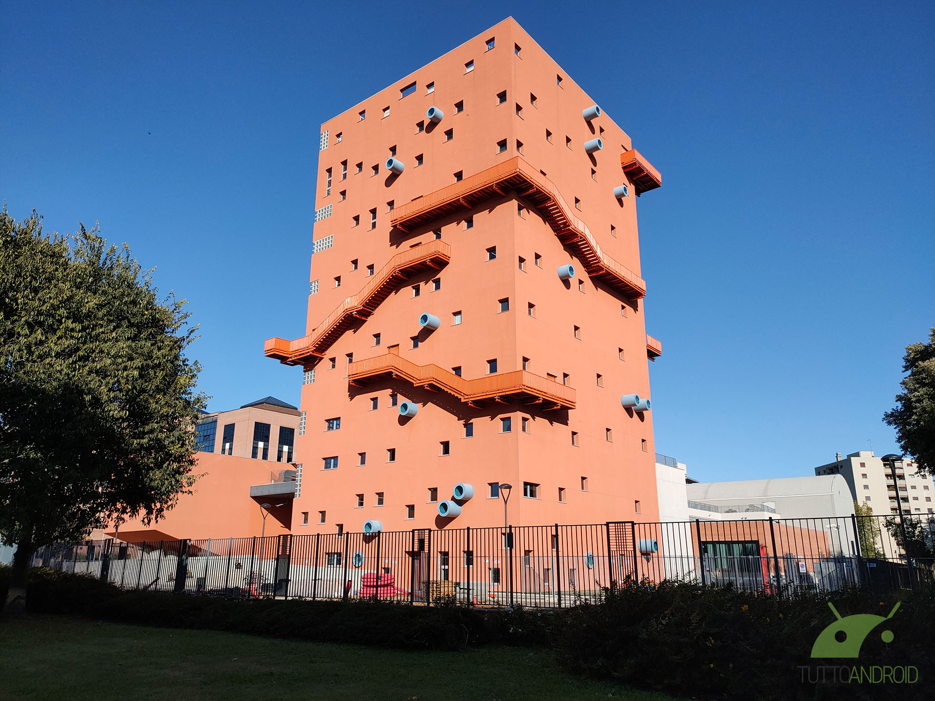 Dall’app Fotocamera possiamo notare come ci siano a disposizione quattro toggle differenti per i vari livelli di zoom: Ultra grandangolare (sensore super-wide), 1x (sensore standard), 2x (sensore tele), 5x (zoom ibrido sensori combinati), arrivando fino al 20x digitale raggiungibile pizzicando al centro dell’inquadratura. Una soluzione ingegnosa e dal buon funzionamento, con un passaggio piuttosto rapido tra i vari sensori. Ciò che ci ha veramente stupiti è, oltre agli scatti notturni ben definiti, la resa con zoom digitale 20x in condizioni di buona luce: sono ancora percepibili le texture di, ad esempio, i muri di un edificio.