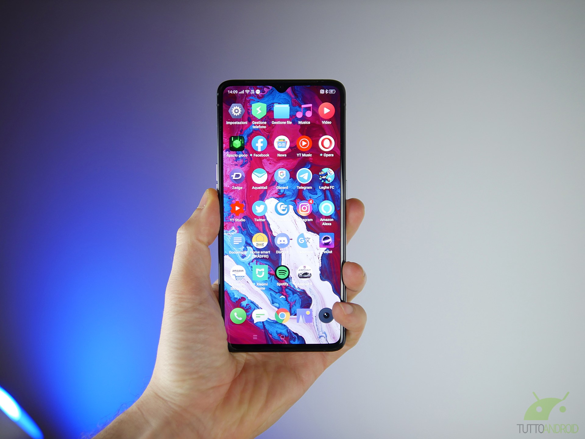 Il design ricorda alcuni altri smartphone, in particolare gli ultimi OPPO e OnePlus 6T e 7, con però una back cover molto curvata e il gruppo fotocamere centrale e sporgente di un paio di millimetri. Frontalmente le cornici sono simmetriche su tre lati, anche se non particolarmente sottili, mentre quella inferiore è appena più spessa e in alto c’è un piccolo notch a goccia che ospita la fotocamera frontale.