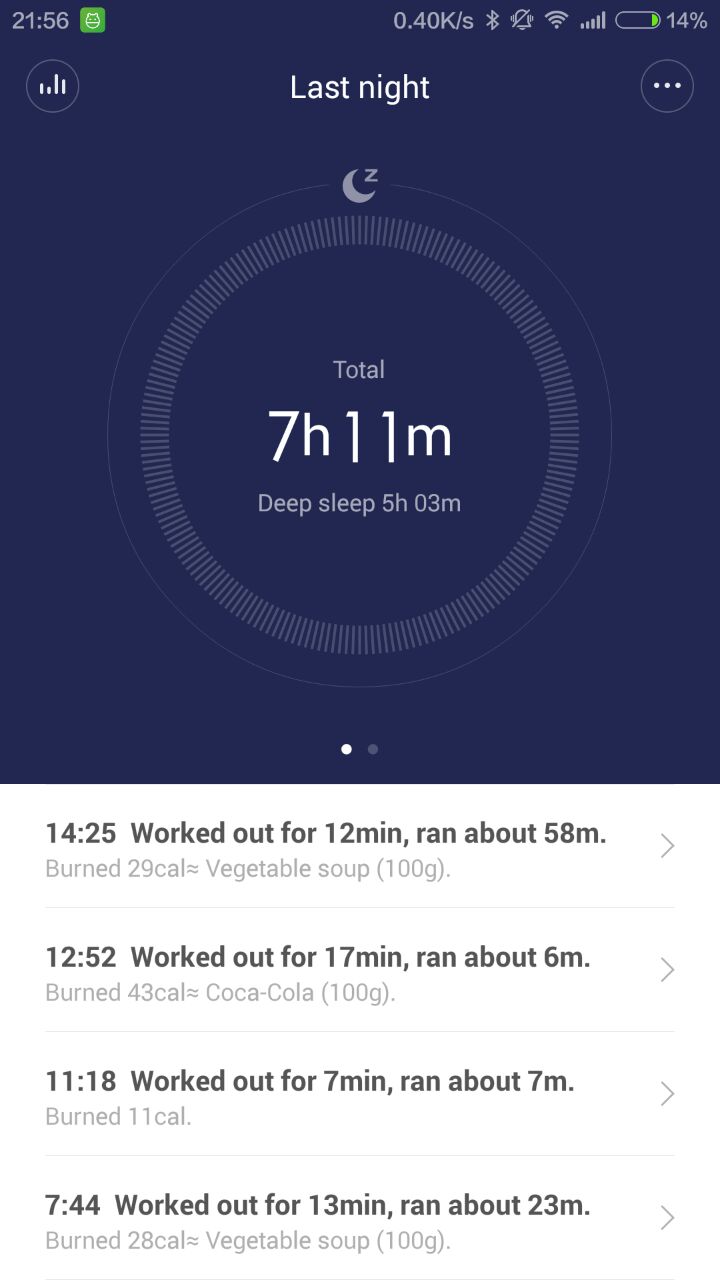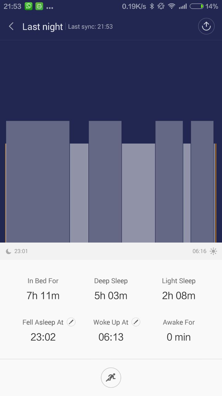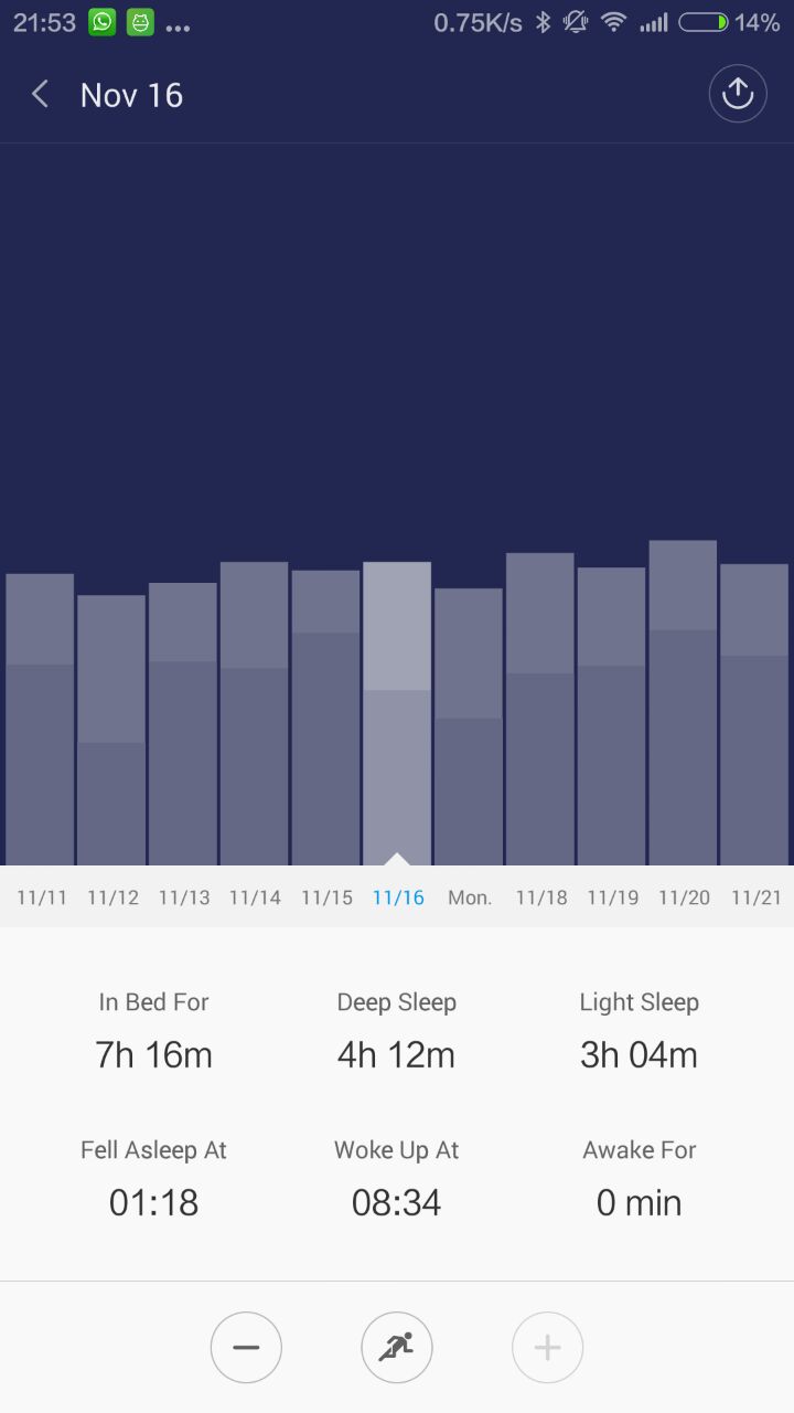 Durante la notte invece, Mi Band capterà i vostri movimenti ed al mattino potrete consultare l’andamento della nottata, tra le varie fasi di sonno profondo e sonno leggero. Molto bella la funzione smart alarm, che a partire da mezzora prima della sveglia impostata, capirà quando vi trovate in una fase di sonno leggero e solo in quel momento azionerà la vibrazione di Mi band per svegliarvi.