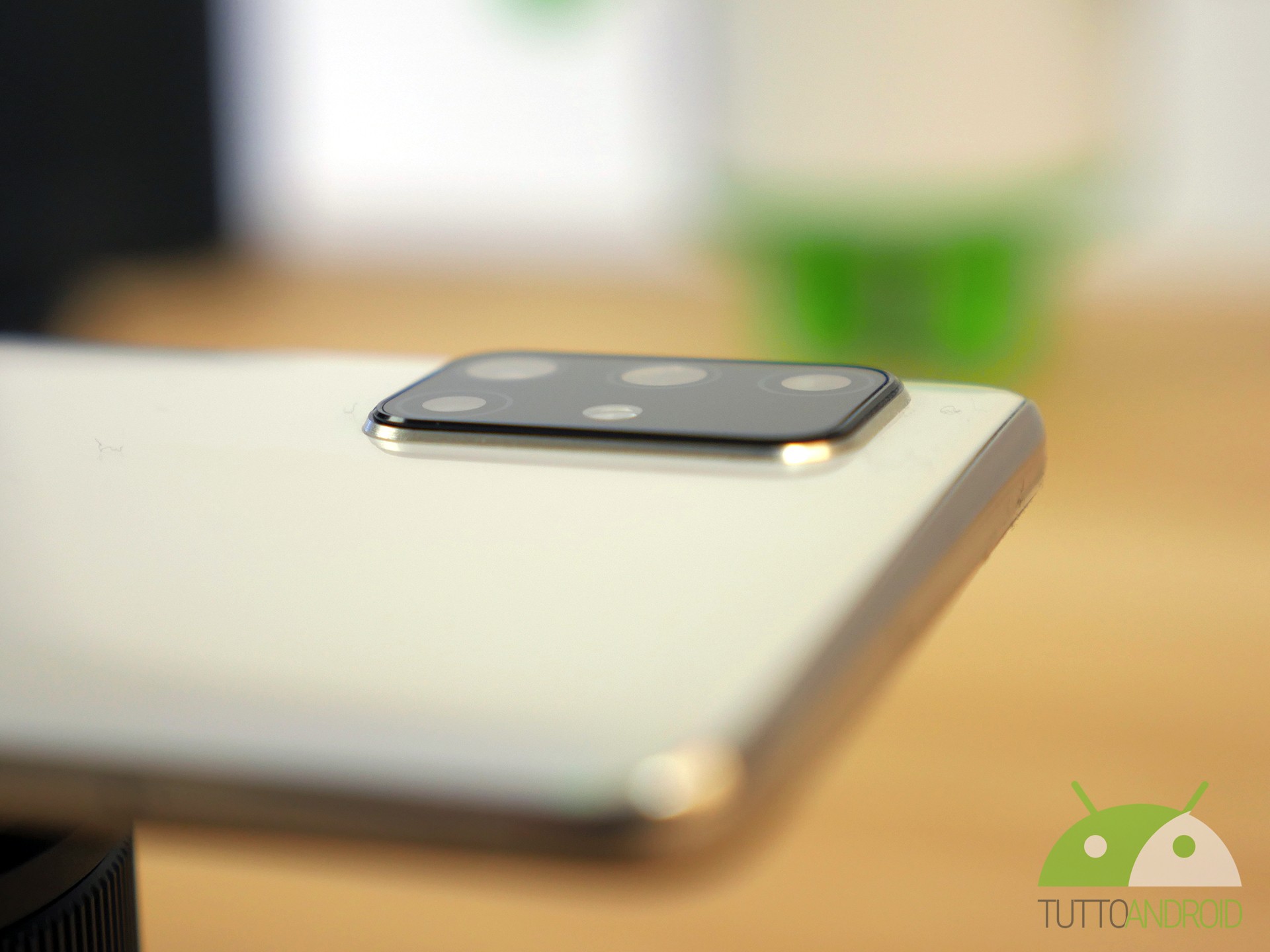 Sul fronte c’è un ampio display da 6,7 pollici di tipo Super Amoled e risoluzione Full HD+ con, al solito e come su Galaxy A51, un’ottima resa visiva, sia all’aperto sotto al sole che al chiuso. Colori brillanti, vividi che all’occorrenza possono essere “calmierati” in qualcosa di più naturale attraverso un’impostazione dedicata. Al centro in alto non vi è nessun notch ma un foro, leggermente più grande rispetto al fratellino più piccolo, che ospita la fotocamera frontale da ben 32 megapixel.