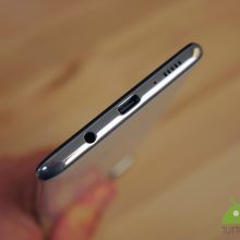 Anche i bordi sono completamente in plastica con una rifinitura lucida effetto metallo, sul lato destro sono presenti i tasti Power e il bilanciere del volume. Inferiormente invece sono presenti il foro per il jack audio da 3,5 mm, la porta USB Type-C e il singolo altoparlante in quanto, purtroppo, l’audio è solo mono e la capsula auricolare viene utilizzata solamente per le chiamate.