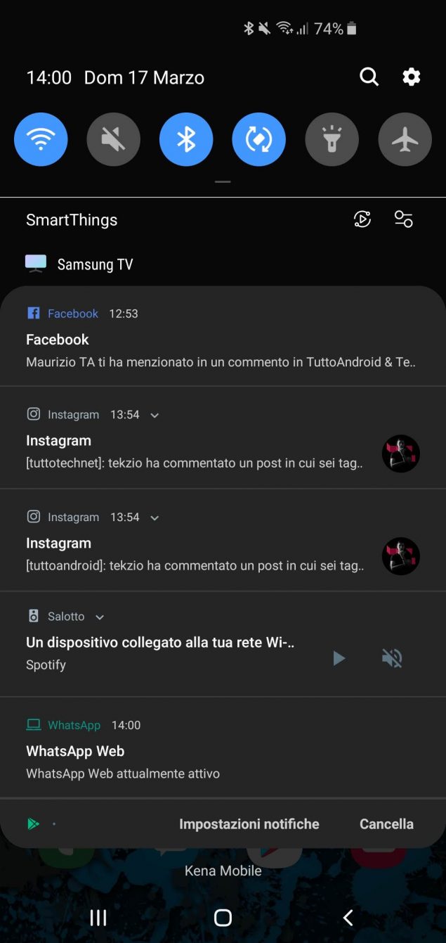 Fra le impostazioni vi segnaliamo la presenza del “tema notte” che imposta come colore primario dell’interfaccia il nero che si sposa benissimo con questo display AMOLED.